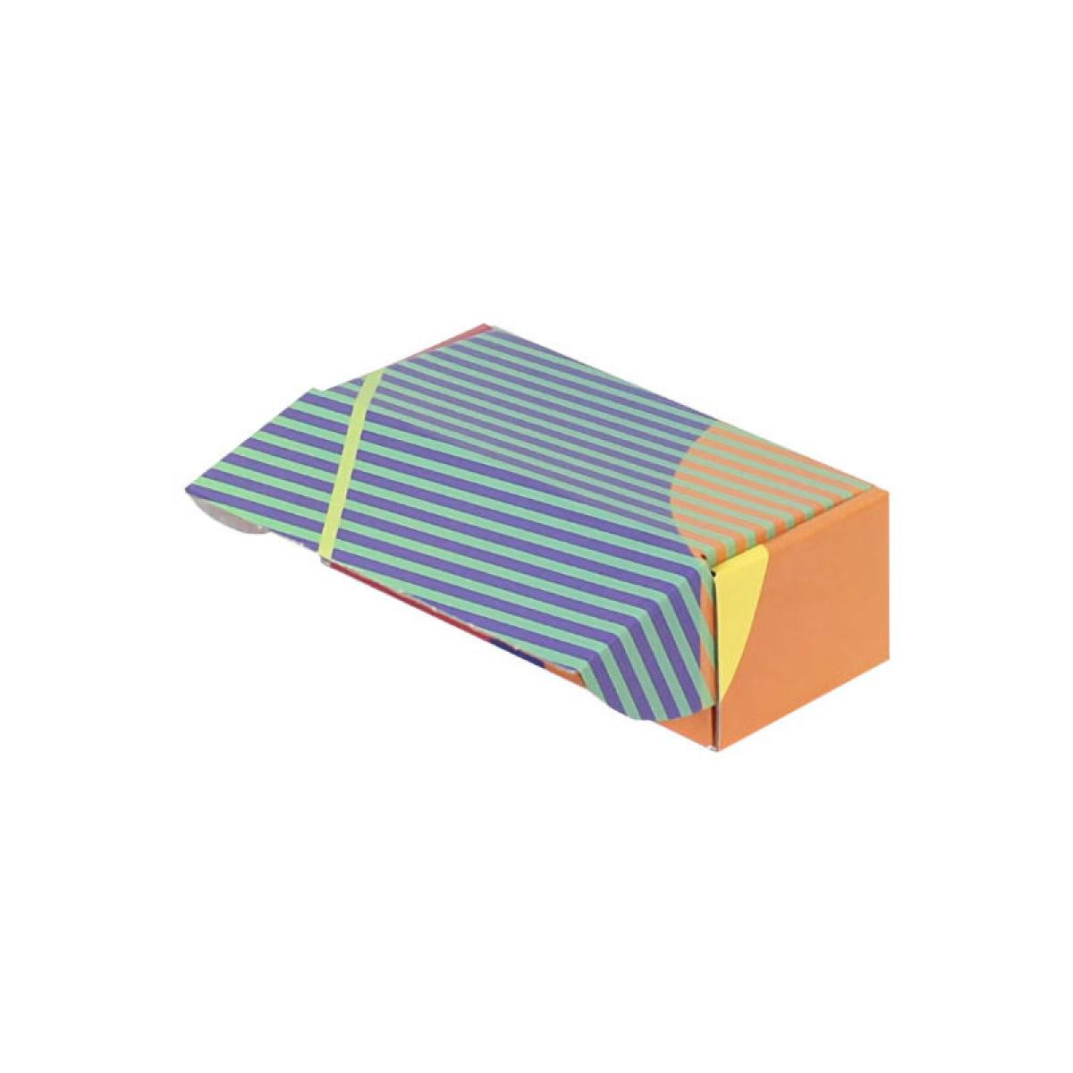 18x7,5x6 cm Renkli Turuncu-Lacivert-Yeşil Çizgili kilitli karton kutu ihtiyacınız mı var? O halde karton kutu satan yerler ya da kolici firmaları arasında en uygun fiyat ile karton kutu satın almak için Bojopack Ambalaj doğru adres.